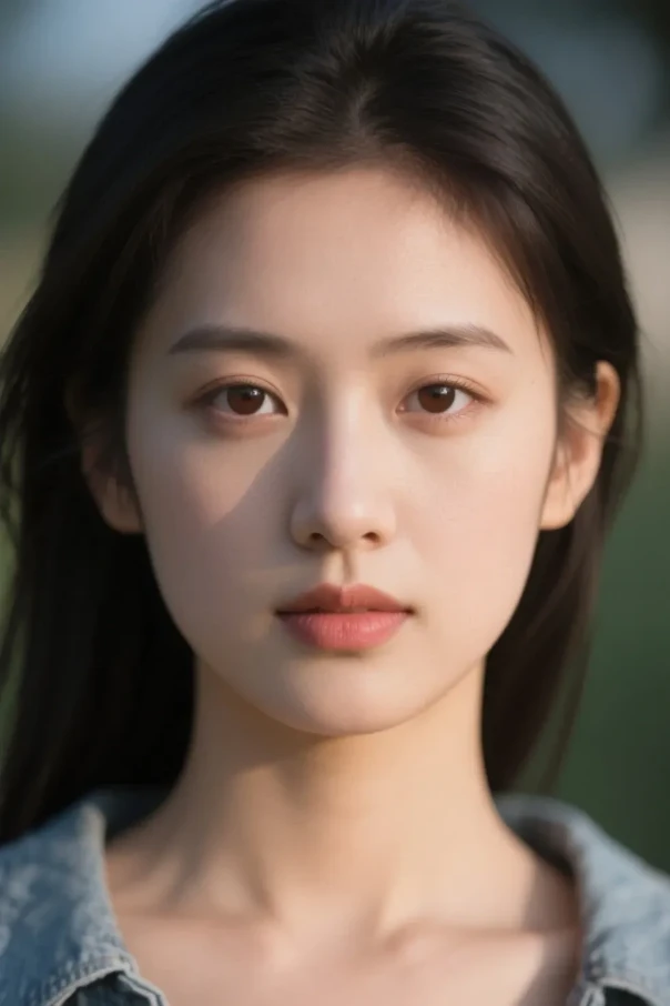 realistic portrait of a young woman(年轻女性的写实肖像), natural lighting【自然光照(非人造打光,真实、柔和)】, smooth skin【光滑的皮肤(细腻无瑕)】, soft expression【柔和的神情(温婉、亲切)】, ultra detailed【超高细节(发丝、皮肤纹理、眼神等丰富细腻)】, cinematic lighting【电影感光效(强调氛围、对比和质感)】, photo-realistic【照片级写实(接近真实摄影的画面)】, 85mm photography style【85mm摄影风格(人像镜头常用焦段,背景虚化, 主体突出】high resolution【高分辨率(图像清晰度高,适合大尺寸输出)】