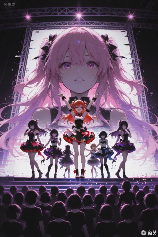 作品链接:A new idol group stands on stage, but surrounded by phantom images of their own - 海艺 AI